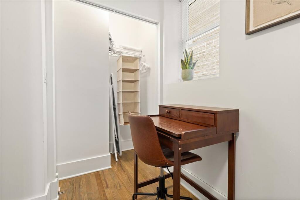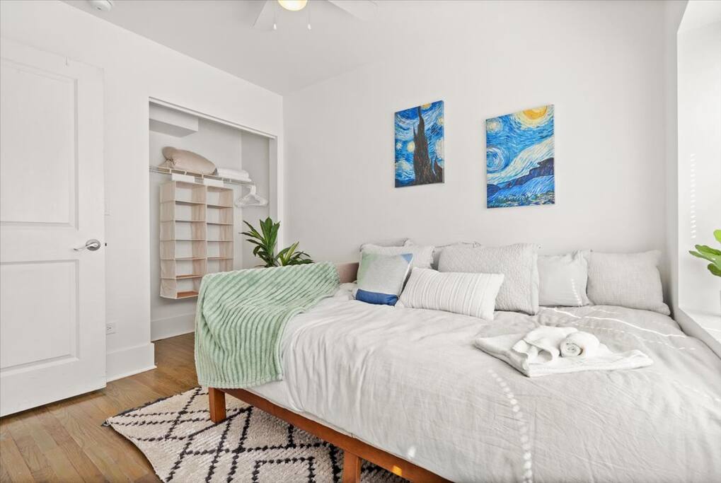 -600 sq.ft apartment / 1st floor / -Free parking pad in rear / free street parking -Commute to Downtown: 15min (drive) / 28min (transit/train) / 22min(bike) -Walk score 93! Bike Score 92! Near Trains to Downtown!! -Gated access w/ Building video and security alarm system and noise monitoring equipment. -Kitchen is stocked w/ cookware, utensils, etc. -Washer and Dryer and Dishwasher in unit (free) -Rideshare(Uber/Lyft) / Bikeshares(Divvy) are bountiful -Safe, working class neighborhood
