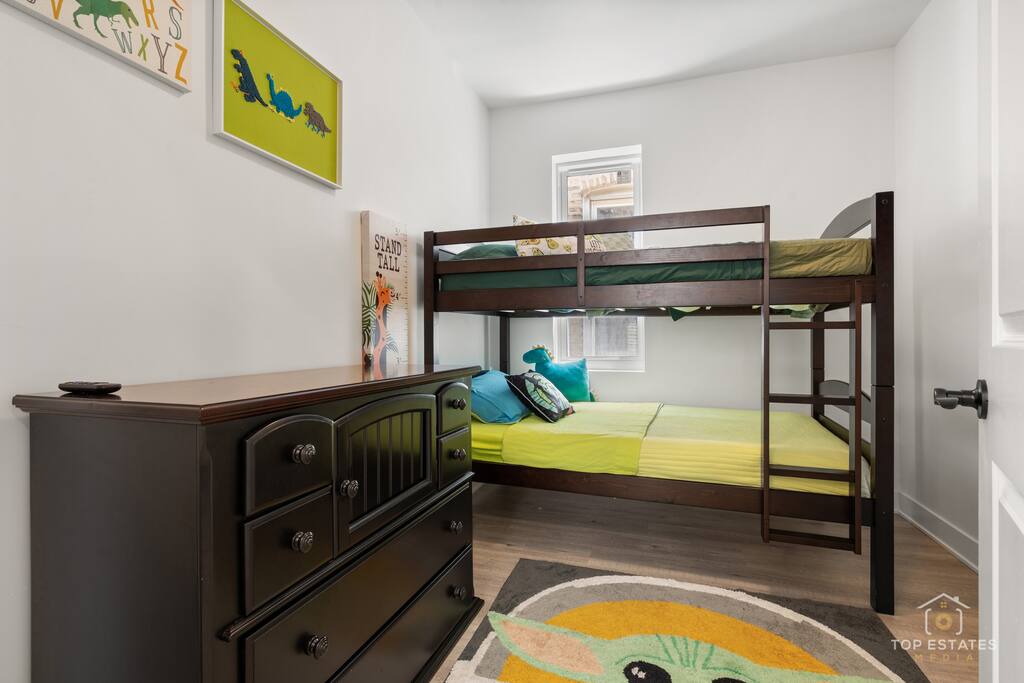 -Huge Single Family Home / 2 Floor / Basement / Patio Deck! -Many Beds / Easily Sleeps 10!! -Commute to Downtown: 18min (drive) -Near Trains to Downtown!! -First Floor Access w/ Building video and security alarm system and noise monitoring equipment. -Bunk Beds / Extra Air Bed -Kitchen is stocked w/ cookware, utensils, etc -Washer and Dryer and Dishwasher in unit (free) -Dining / Nightlife scenes nearby!! -Rideshare(Uber/Lyft) / Bikeshares(Divvy) are bountiful -Safe, working class neighborhood